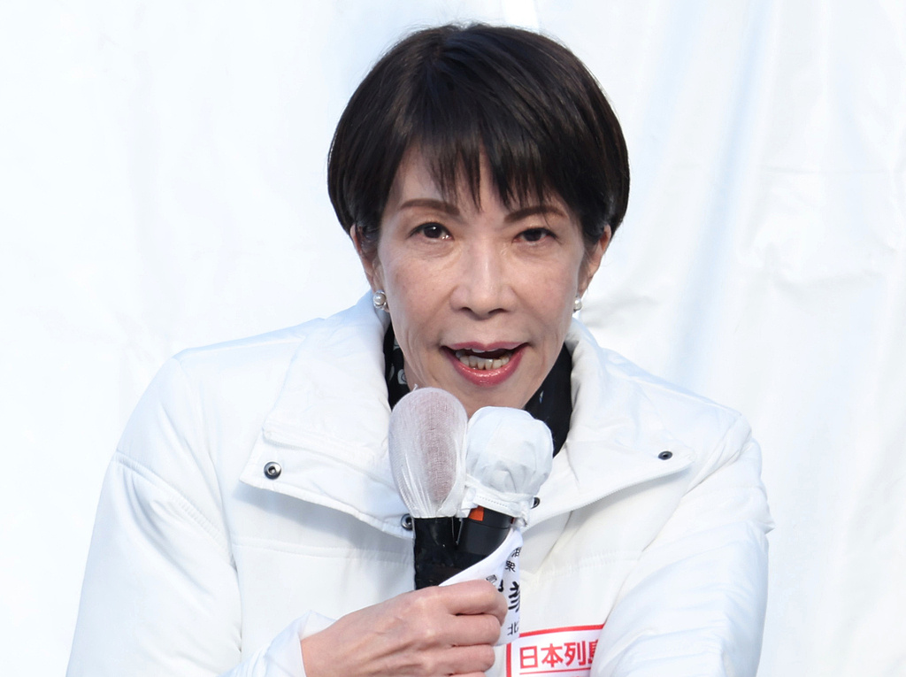 △日本首相、自民党总裁高市早苗在众议院选举竞选期间发表街头演说